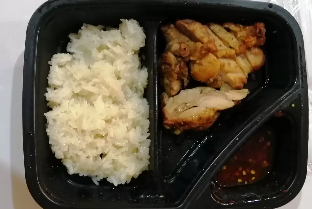 The grilled chicken in this lunch box is crispy on the outside, juicy on the inside, with a small compartment of special dipping sauce. Dip the chicken in the sauce, then take a bite of the chewy sticky rice—perfection!