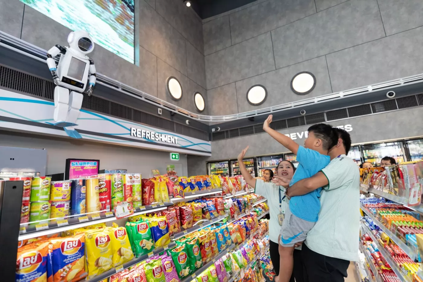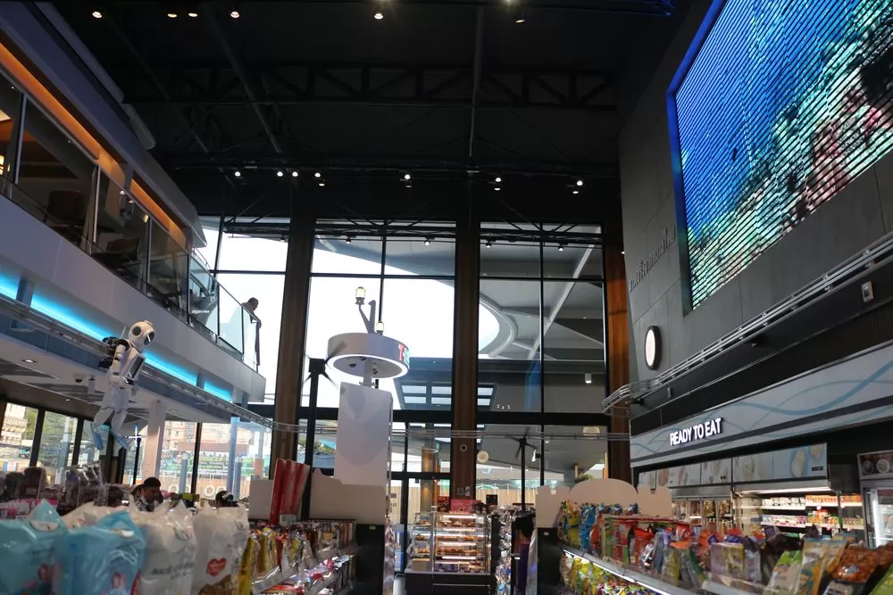 The most technologically advanced feature of the store is its "smart employees." These little robots are not just decorative with LED screens, but interactive robots that patrol the store, greeting customers with enthusiasm!