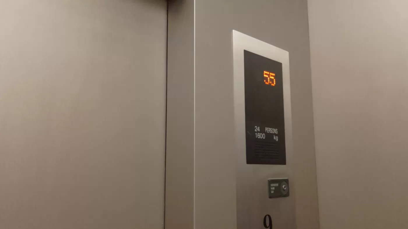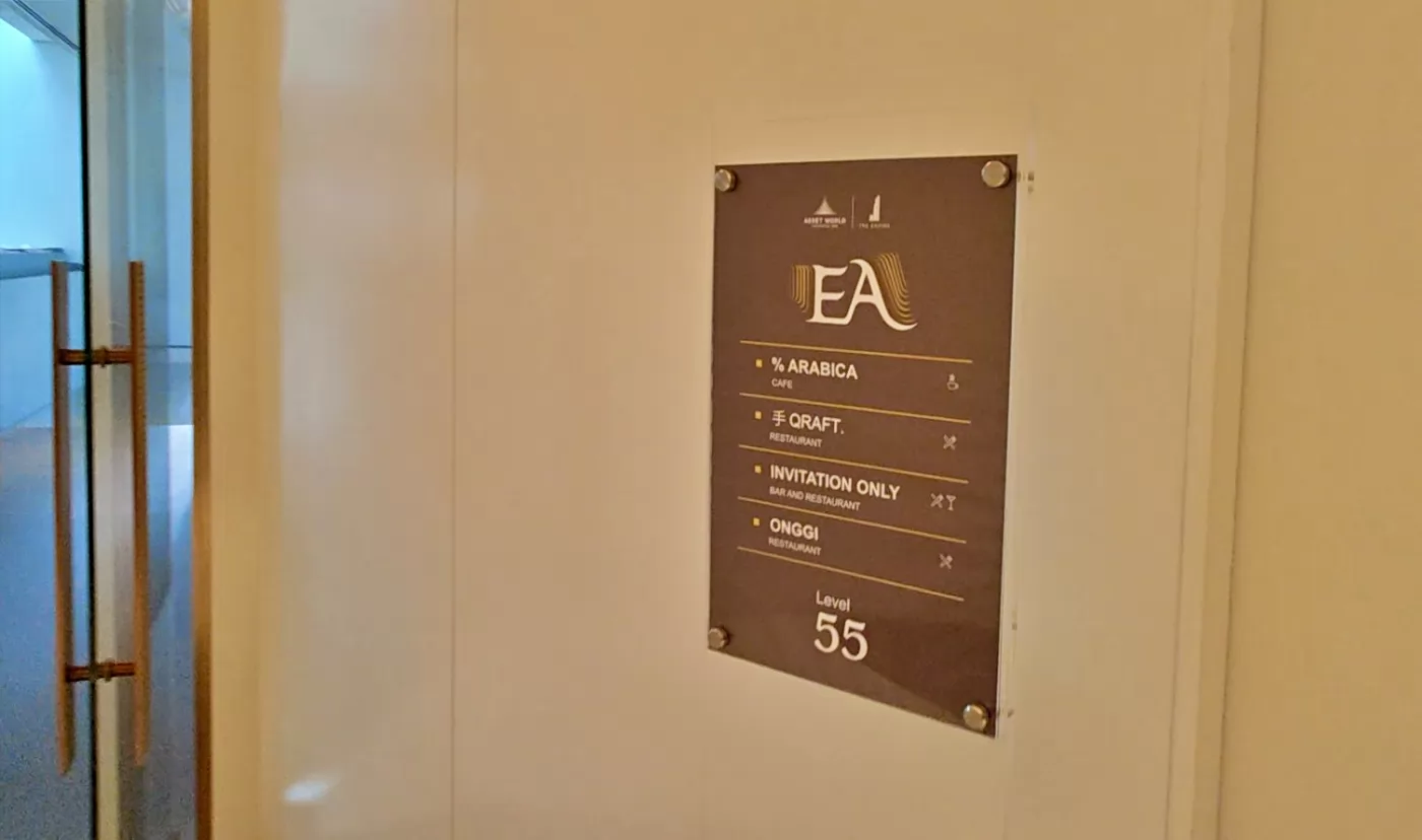 Enter through the door to the right of the 'EA' sign, and it feels like stepping into another world. The hallway and elevator décor are somewhat extravagant, and there is an attendant inside the elevator to take you directly to the 55th floor for free.
