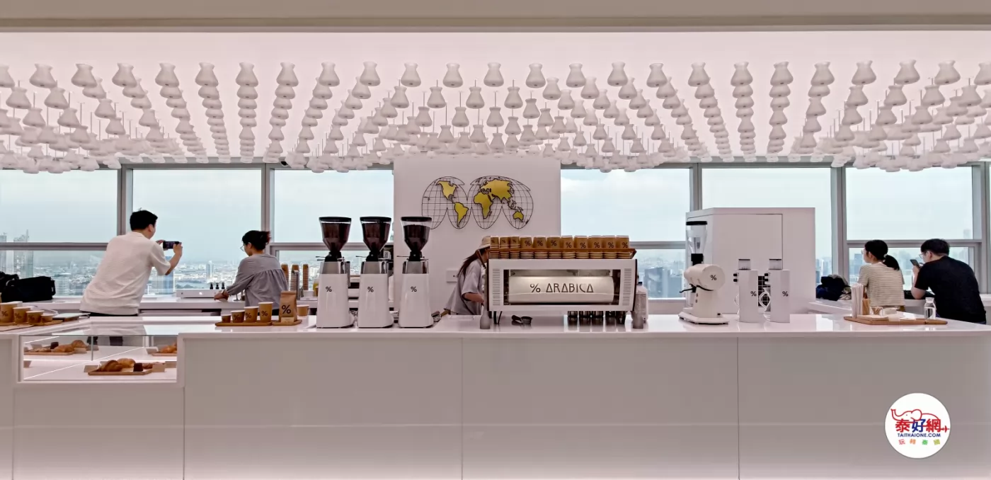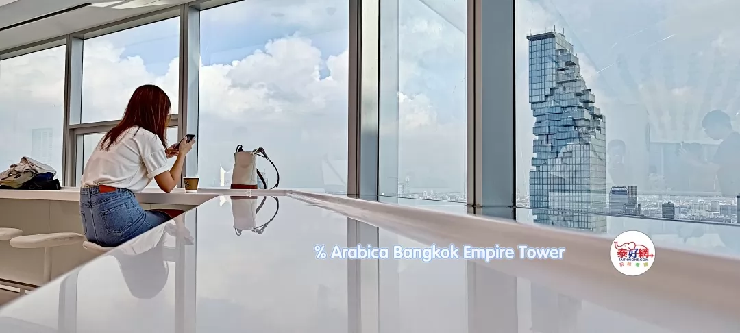 % Arabica Bangkok Empire Tower branch is located on the 55th floor, where you can enjoy a cup of coffee while admiring the highest Mahanakhon (King Power Tower) and Bangkok's skyline. A must-visit spot!