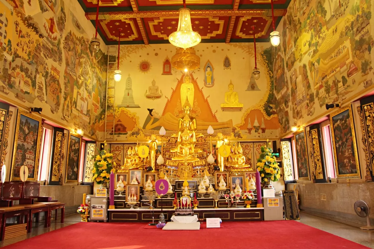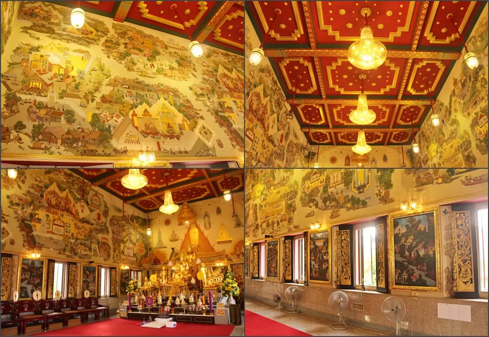 The main hall of the temple features beautiful murals depicting the biography of Somdet Phra Buddhacarya.