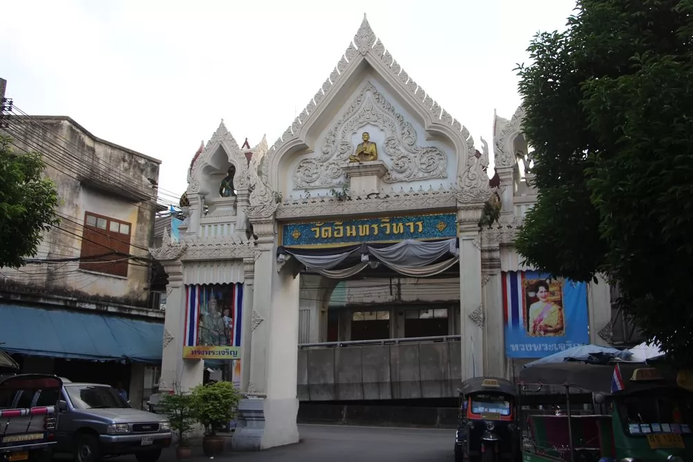 Due to its name being similar to another temple, it was officially renamed Wat Intharawihan Bangkhunprom Nok during the reign of King Rama VI. However, people still commonly refer to it as Wat Inn. It is classified as a third-class royal temple.