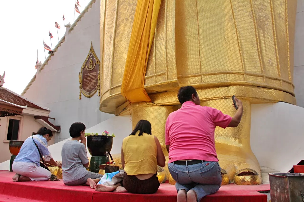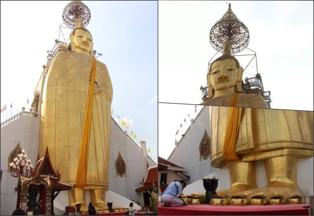 It is considered the second tallest Buddha statue in Bangkok, after the seated Buddha at Wat Pratunam. The top of the Buddha's head contains relics of the Buddha. This statue symbolizes blessings for prosperity, attracting numerous devotees who come to worship and make wishes. Offerings of flowers at the statue's feet symbolize prayers for good luck and health, and some even pray for fertility. Those who wish to fulfill their vows often bring live fish and boiled eggs, as these are considered the favorite offerings for Luang Phor Toh.