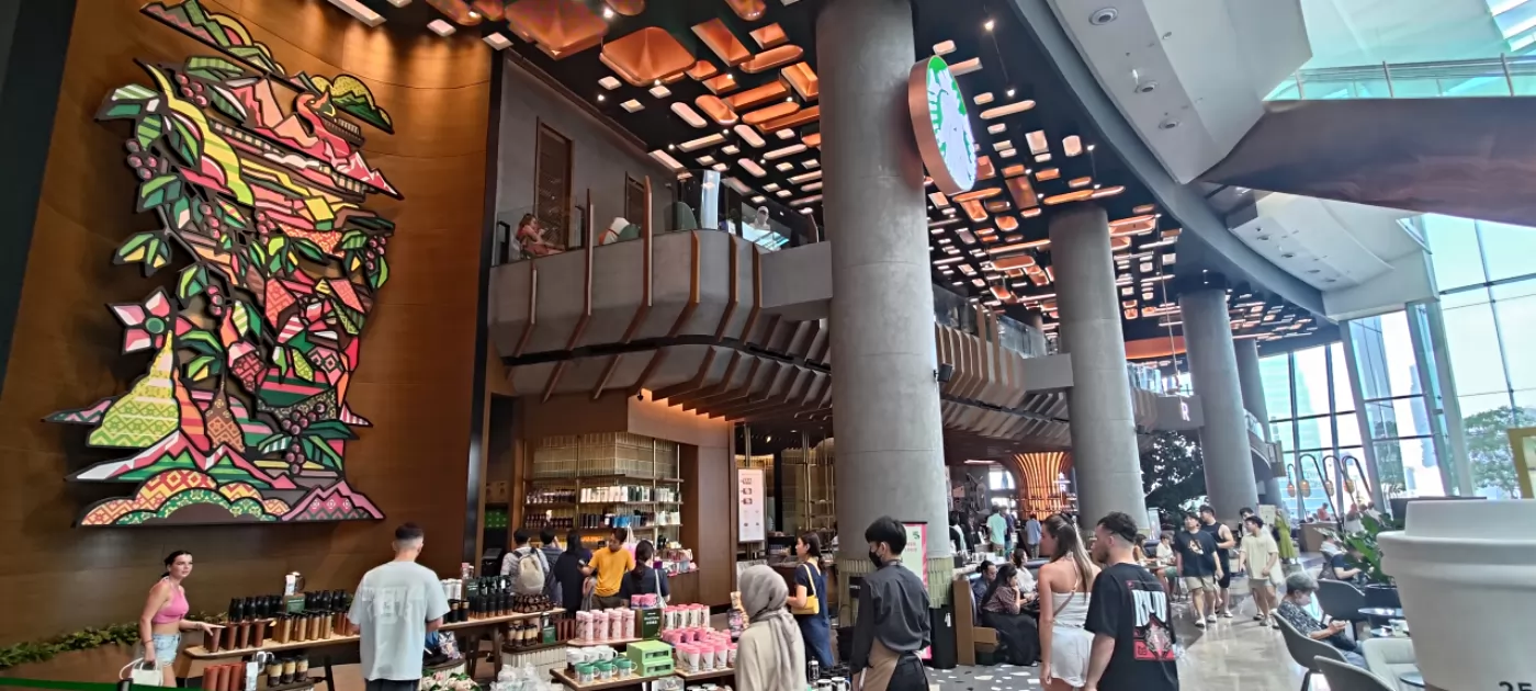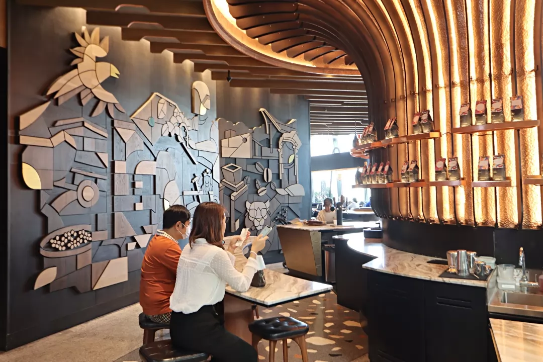 The Starbucks branch at ICONSIAM gathers four shining innovations: the largest store, a new way of experiencing coffee, the first store offering a tea beverage bar service, and the creation of the "Starbucks Muan Jai Blend Coffee" in collaboration with the coffee farming community in Northern Thailand, attracting Starbucks fans to make a pilgrimage.