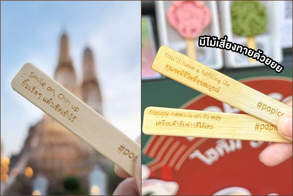 Similar to fortune cookies, after finishing a Pop Icon 3D popsicle, a message of blessings or Buddhist wisdom is revealed on the stick.