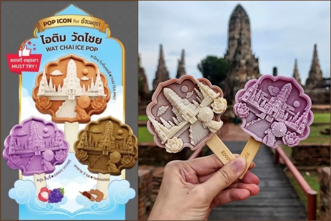 Wat Chaiwatthanaram in Ayutthaya is a popular spot for tourists wearing traditional Thai outfits. Pop Icon 3D, in collaboration with a nearby café, offers exclusive Thai Tea, Mixed Grape Fruit, and Tamarind flavors—beautifully crafted with intricate designs. But let’s be honest, the real appeal is taking a photo in front of the temple with one!
