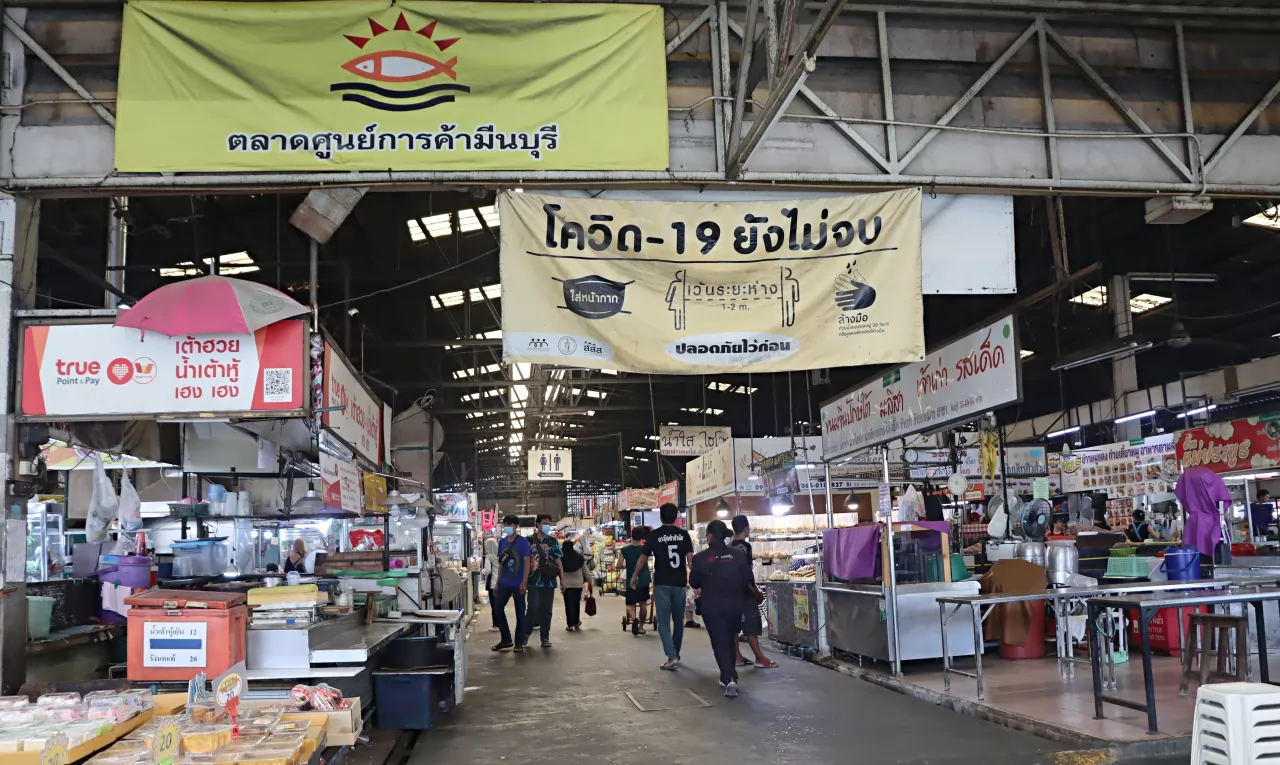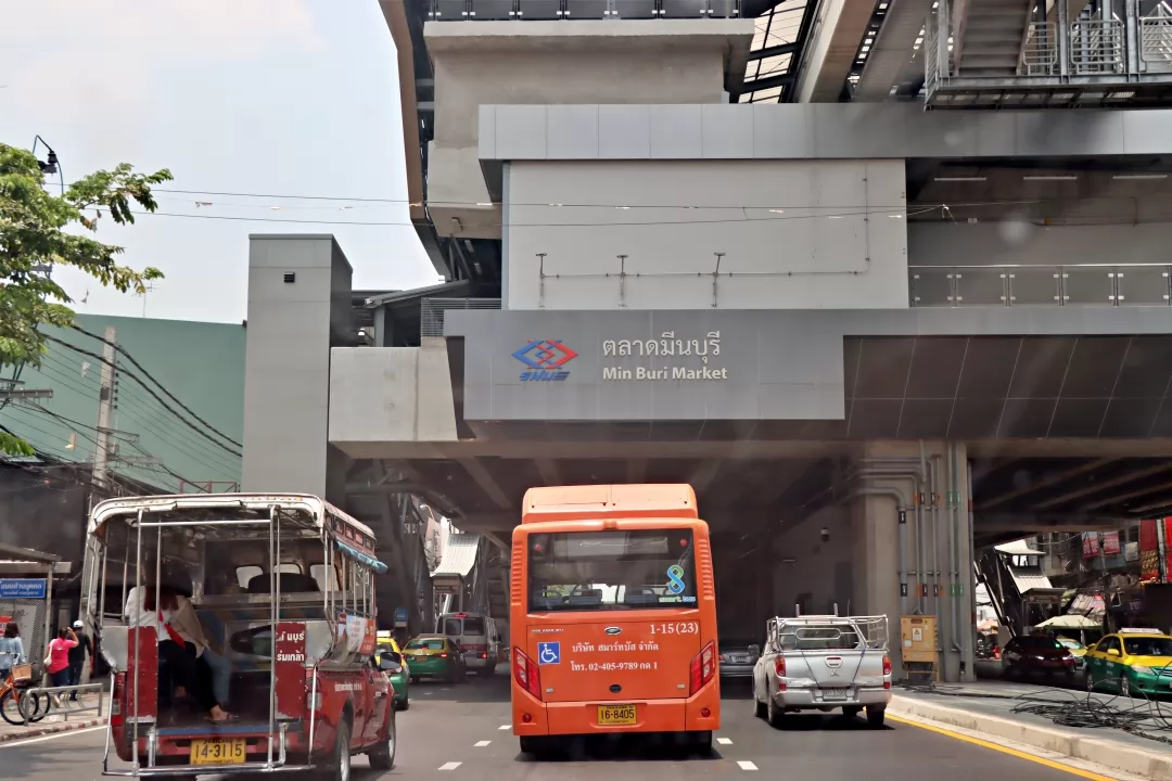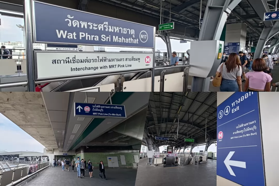 In April 2024, Thai visitors will explore Min Buri Market (second-to-last station). From the BTS Green Line, get off at Wat Phra Sri Mahathat Station, where there are signs guiding you to transfer to the MRT Pink Line. The transfer method is similar to the Yellow Line, with monorails and easy ticketing, and it's less crowded.