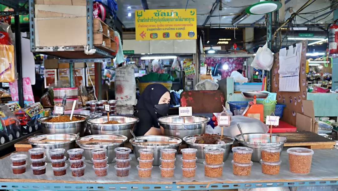 What makes Min Buri Market different from other large traditional markets in Bangkok is the large Muslim population here. Some of the vendors are Muslim women wearing headscarves, and the goods and foods they sell are often related to Islamic practices. If you're Muslim or are interested in Islamic food, this market is definitely a place you should visit.