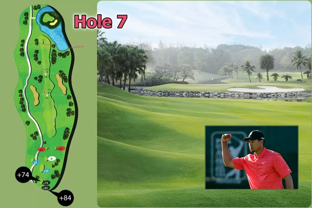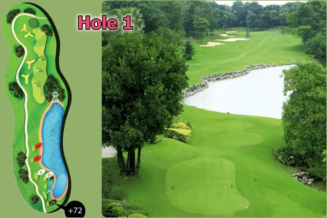 Hole 1 – This excellent par-3 starting hole, known as "The Waterfall," gives golfers a "first challenge" and sets the tone for the next four hours. The rolling hills, trees, water features, and strategically placed bunkers all create carefully arranged obstacles. Trust the caddie's guidance and start confidently, aiming for the right side of the fairway to set up an easy approach to the green and begin your day with a standard par.