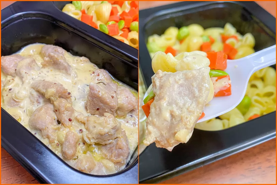 It provides high-protein pork combined with a secret cream sauce, offering a rich, creamy flavor with the wonderful fragrance of mustard and butter. This dish provides over 17 benefits, nourishing the body, skin, and hair, while the macaroni and vegetables like green beans and carrots add a perfect balance.