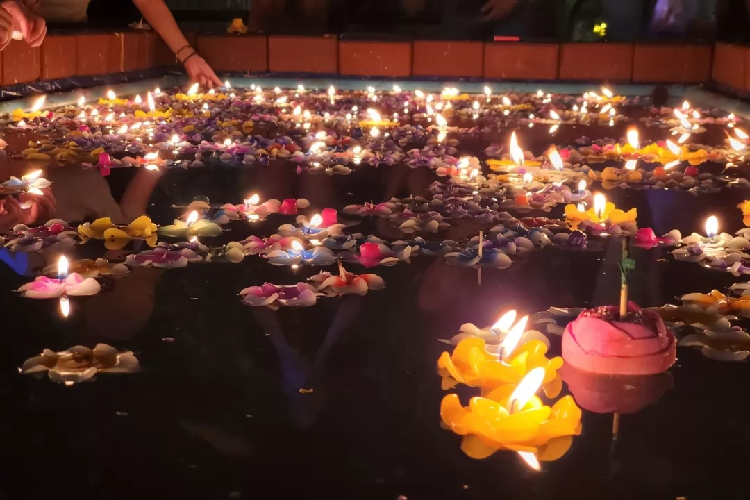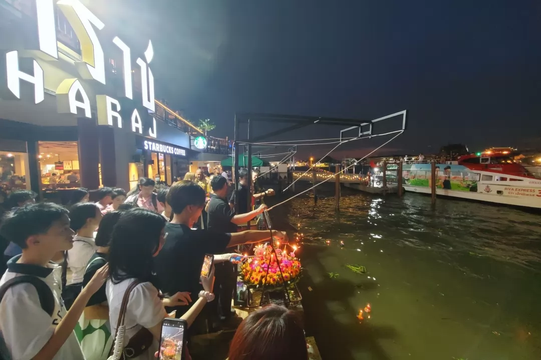 When I arrived near Thammasat University, I experienced launching a krathong for the first time. I lit the candle, pressed my hands together in a silent wish, and gently placed the krathong onto the river, watching it drift away with the current. At that moment, I felt an unprecedented sense of peace and happiness. Though the ritual is simple, it carries deep blessings and gratitude, leaving a profound impression on me.