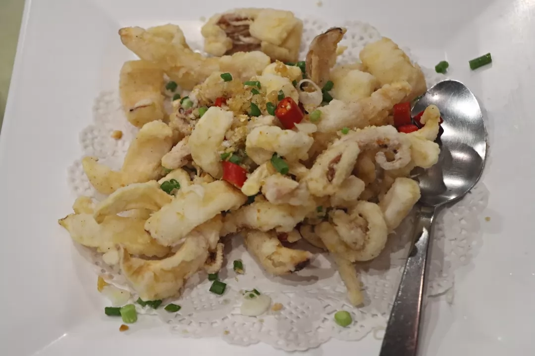 This is another dish that you’ll order every time you visit. The squid is stir-fried without being greasy, with a crispy coating on the outside, while the squid inside remains chewy and soft. Elderly people can even chew it easily! Combined with salt, fried chili peppers, and Chinese spices, it offers a deliciously different flavor.