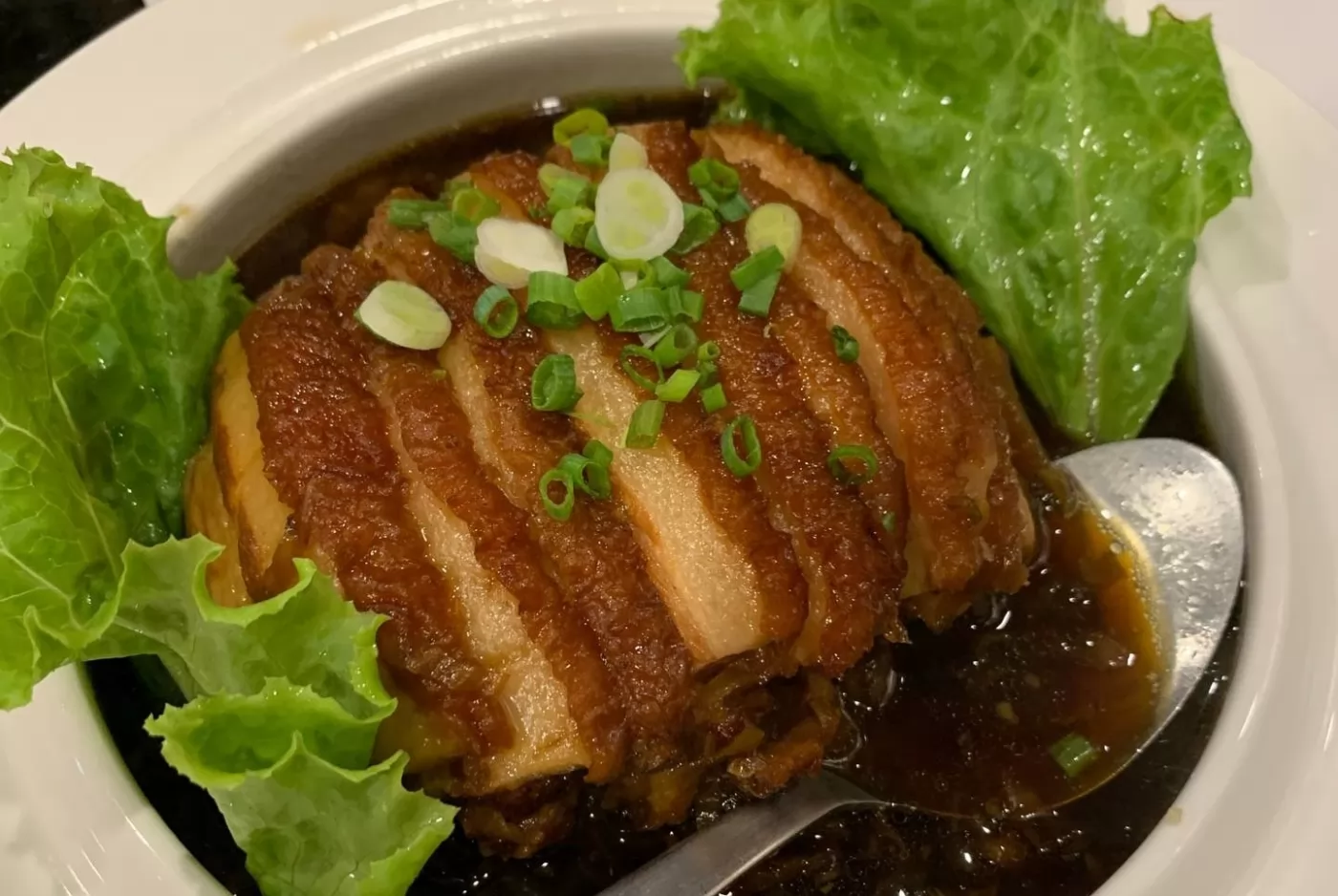 This dish is incredibly delicious. The pork belly has the perfect balance of fat and meat. It’s slow-cooked until tender, melting quickly in your mouth with a sweet and savory flavor. The pickled mustard greens underneath are also soft and pair perfectly with white rice.