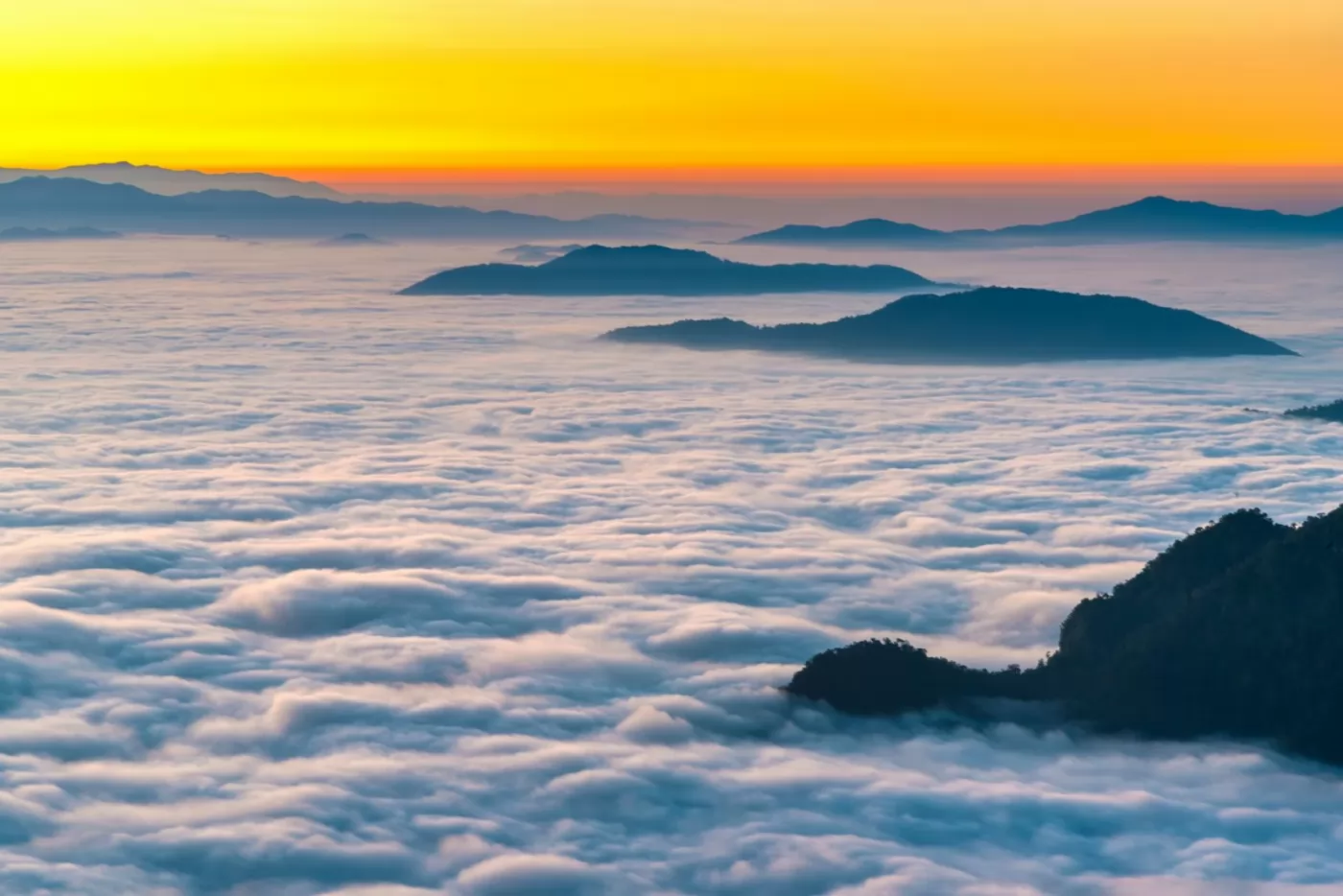 The peak got its name because its shape resembles a finger pointing east. In the early morning, mist swirls around the mountainside. Upon reaching the summit, visitors are treated to a beautiful grassy field with a breathtaking view of the endless sea of clouds and a dazzling sunrise, creating a magical, fairytale-like atmosphere. After sunrise, you can also see Laos in the distance and the Mekong River winding through the landscape, which is one of the reasons why Phu Chi Fa is so beloved by tourists.