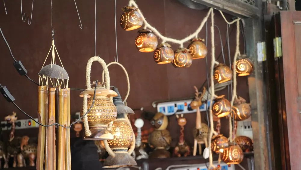 Amphawa’s coconut farmers make full use of coconuts, turning them into various essential products, such as health supplements and decorative lamps. Don’t forget to check them out when visiting the floating market!