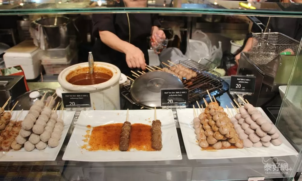 還有肉丸子(牛肉、豬肉、雞肉和魚),1串5粒20銖。
