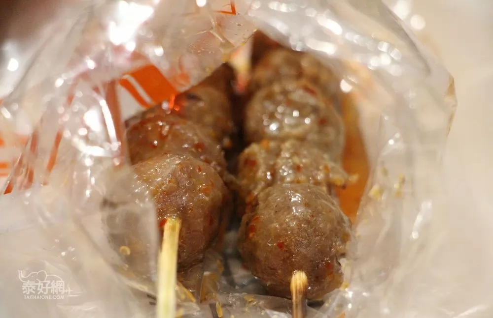 這裡有泰東北的香腸,圓圓1粒粒的,一口吃,1份45銖。