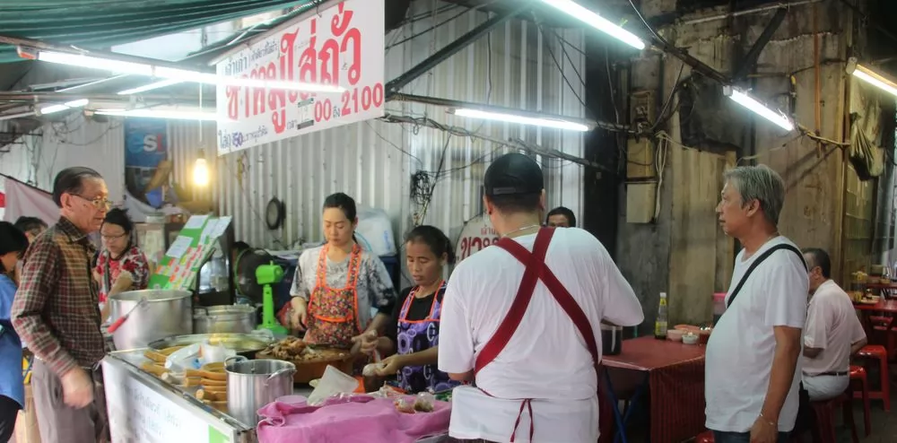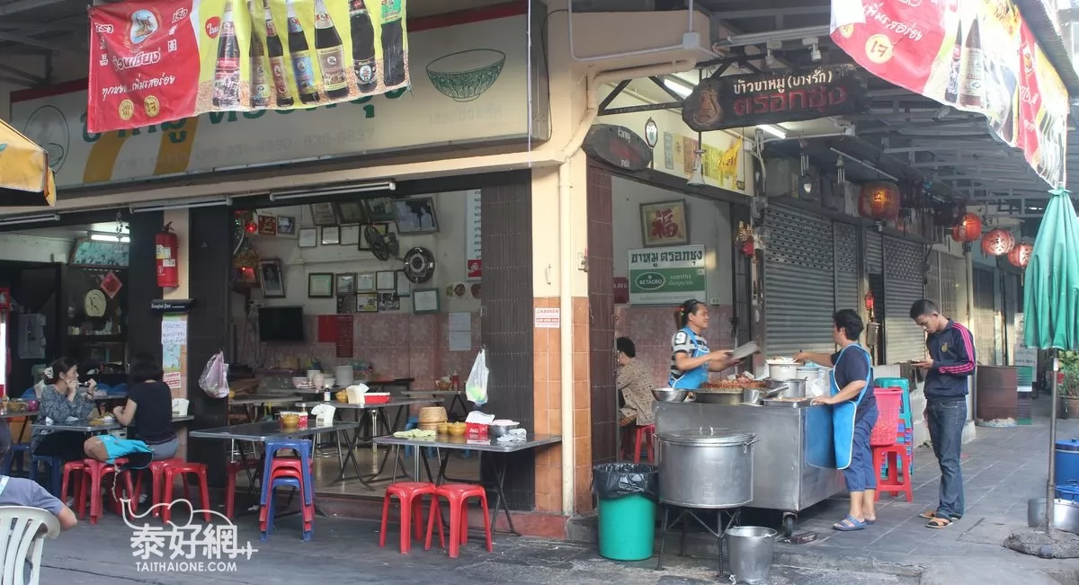 位在中國城的石龍軍路(Charoen Krung Rd)巷子裡,至今營業已超過30年。顧客隨時來這裡都可以吃得美味的豬腳飯。