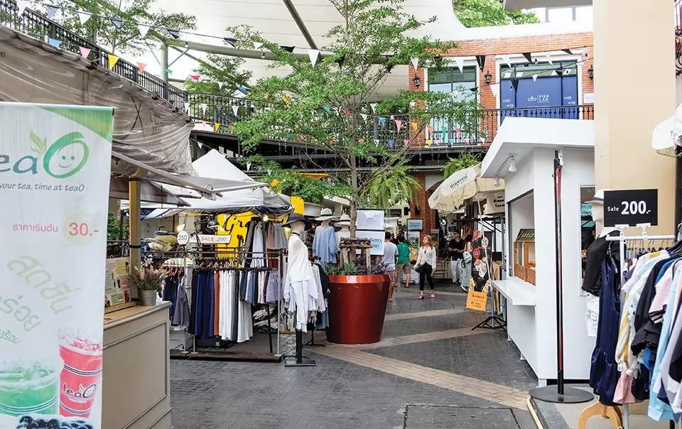由10個貨倉組成,佔地相當大,與一般泰國夜市不同,一間間店鋪坐落在仿古舊貨倉裡,全都有屋頂,不用擔心下雨。