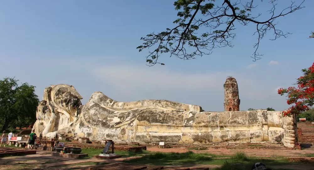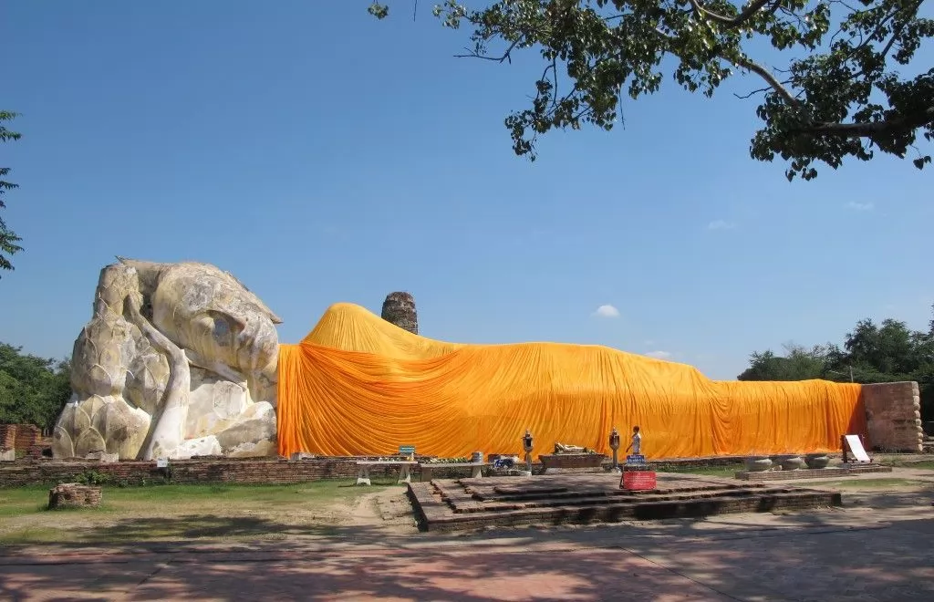 大城府眾多寺廟遺跡中,Wat Lokaya Sutha(วัดโลกยสุธา)雖然已經是一片斷垣殘壁,但卻留下1尊完整的臥佛,成為熱門的景點。