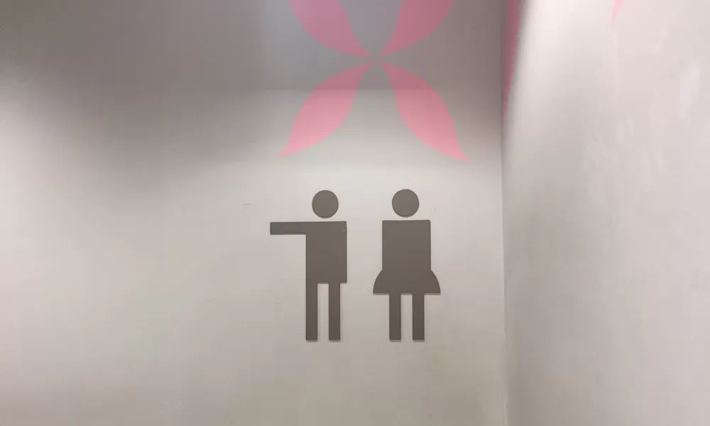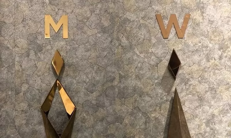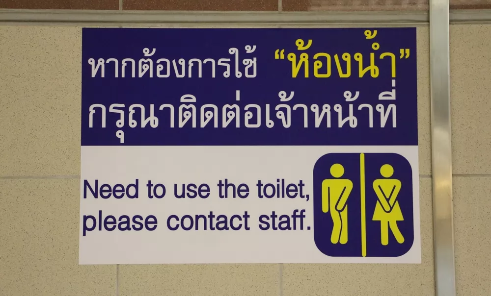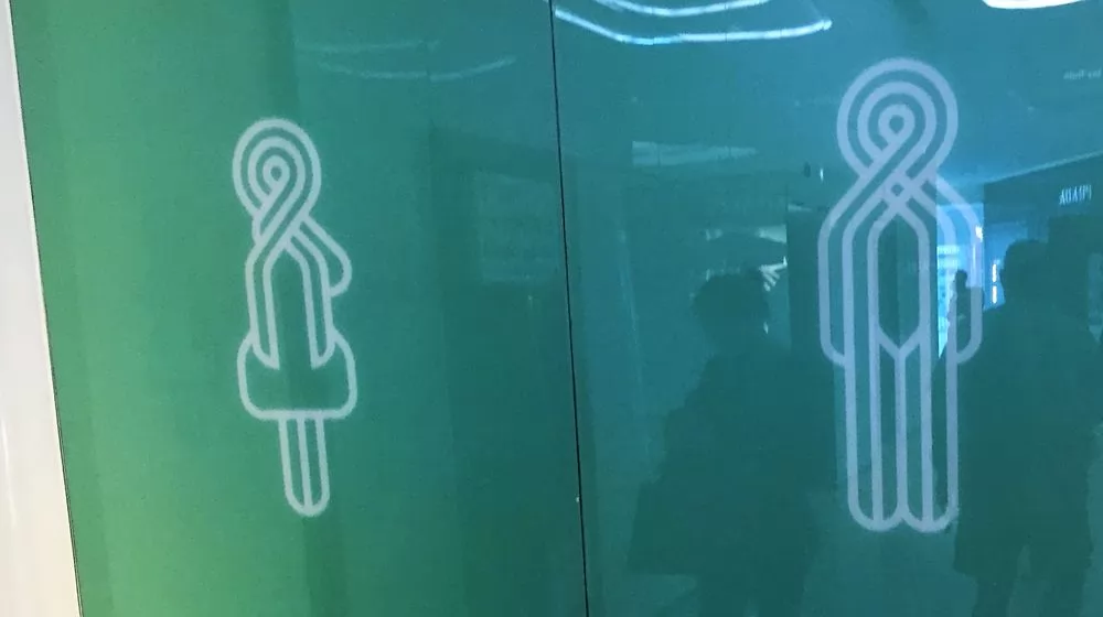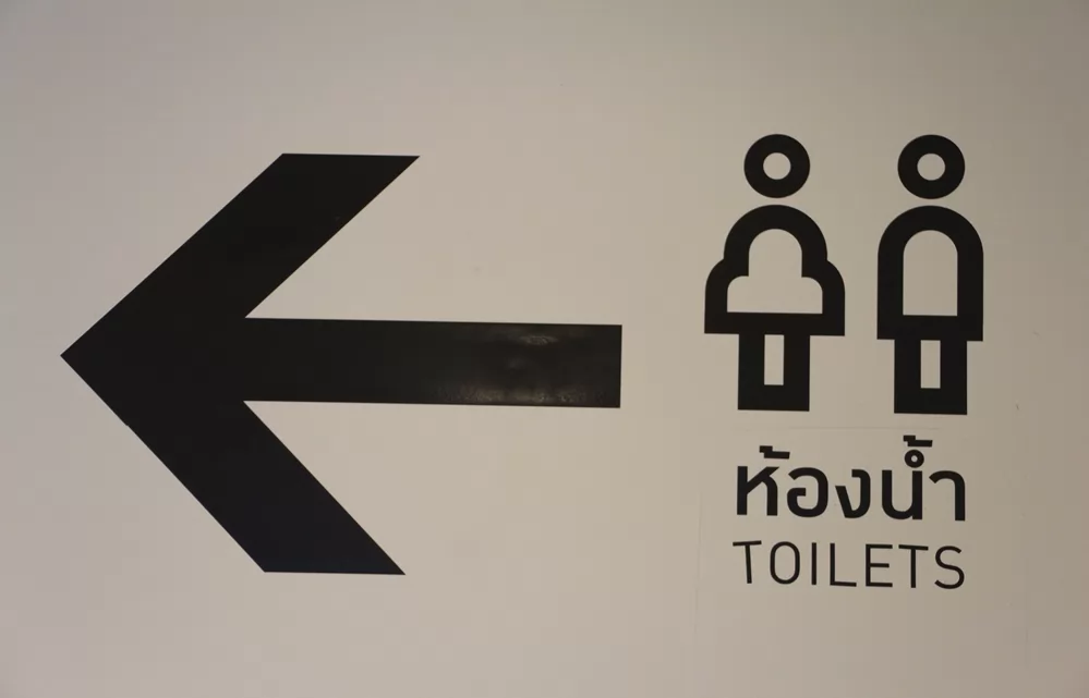 雌雄難辨—Iconsiam新商場的標誌,讓人難辨到底是那邊是男廁所、那邊是女廁所。最後逼得商場在上面加註英文的M、W,才化解這尷尬問題。