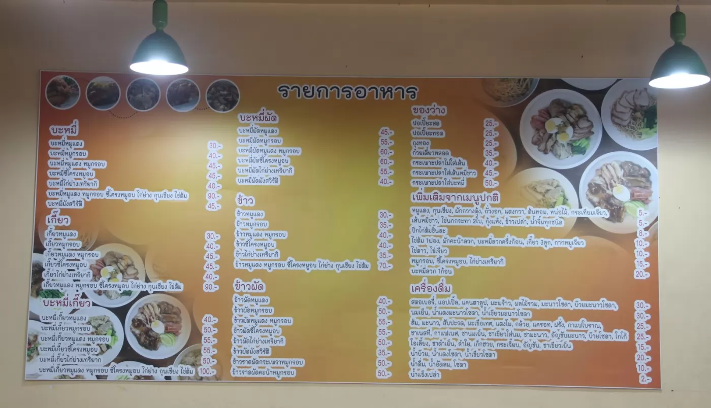 店裡的牆壁上有菜單,都是泰文,店家似乎不願跟外國人打交道,如果有當地朋友帶來吃,應該沒問題,不然只能用簡單的英語和手勢了。