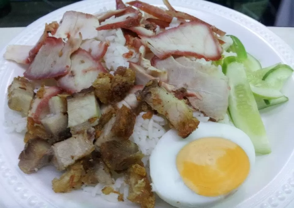 這裡也有叉燒飯、脆皮豬肉飯和炒飯,價格在30-55銖之間。