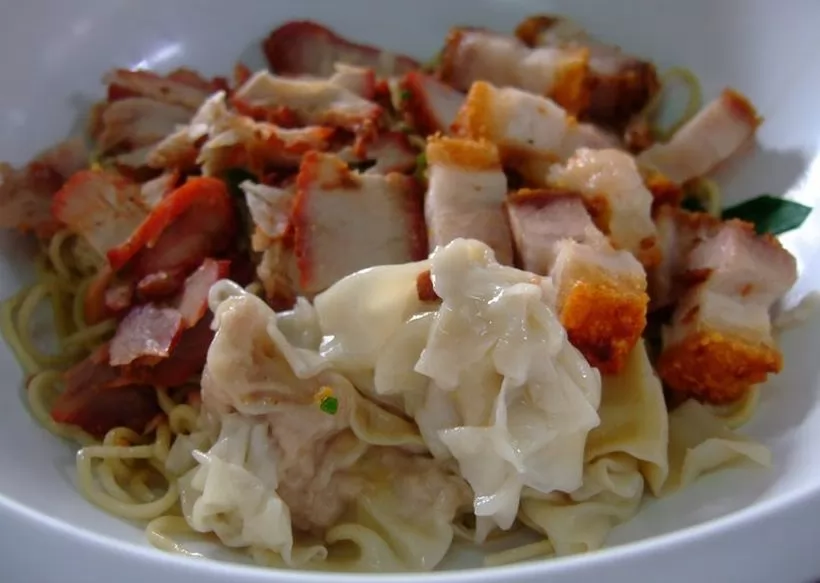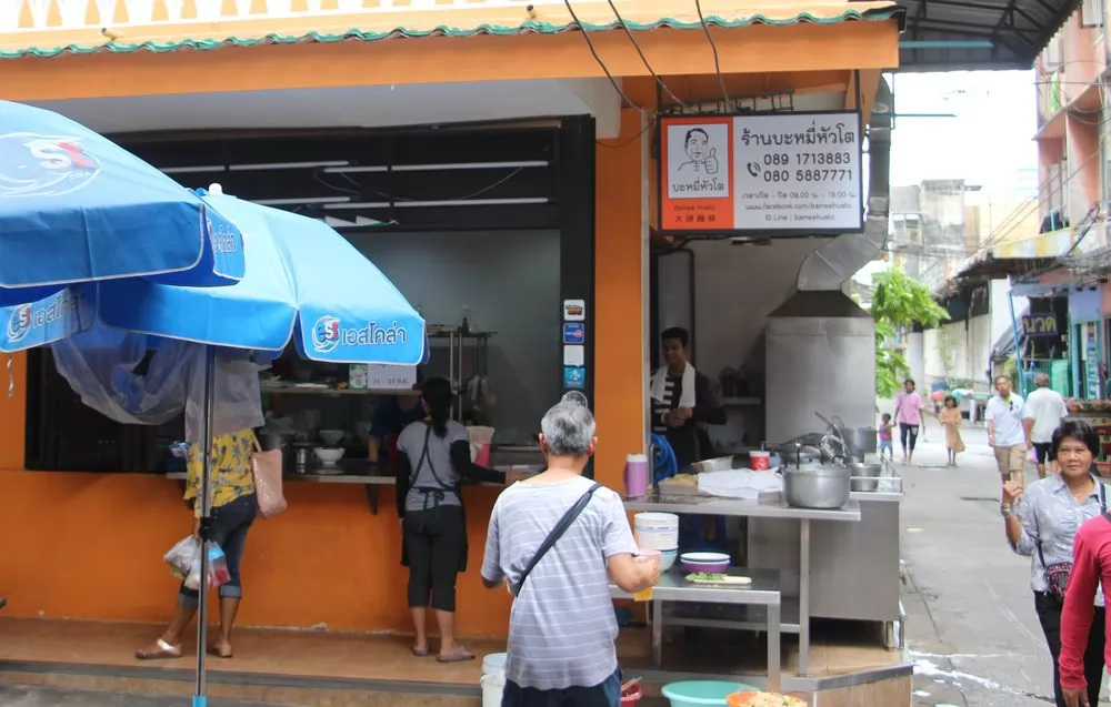 在曼谷,象哥很少吃麵,但是到大頭麵條(Bamee huato;บะหมี่หัวโต),一定是吃麵和餛飩,而不是點粿條和飯。