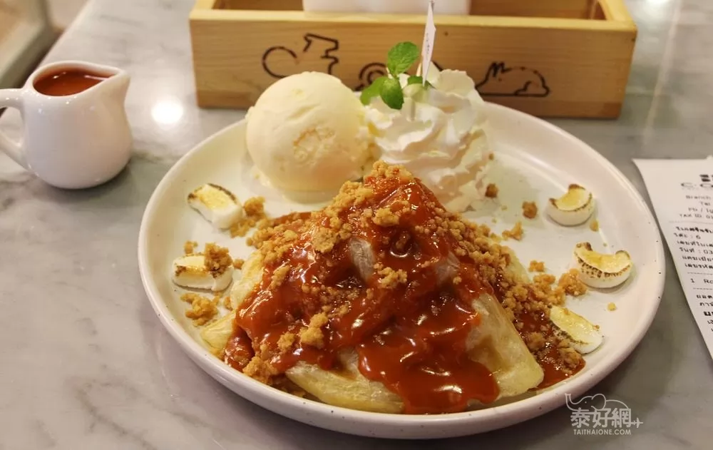 妖妹這次嚐試的Sizzling Roti Thai Tea,泰式奶茶+印度煎餅,香脆好吃,淋上泰奶,甜度加分,還可以配上奶泡和冰淇淋來吃,口味更佳!還有燒烤過的白軟糖,別有風味,甜上心頭,忍不住一口接一口。這樣1份175銖,讓妖妹感覺很超值,力推給大家!