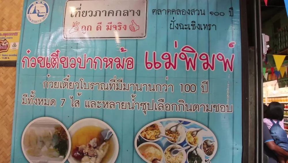 這家Pak Mor Mae Pim Noodle(ก๋วยเตี๋ยวปากหม้อแม่พิมพ์),分成兩邊,販售傳統粉粿已超過百年,有7種配料和多種湯底可選,好吃之外,最重要的是便宜(1碗45銖)和體驗。