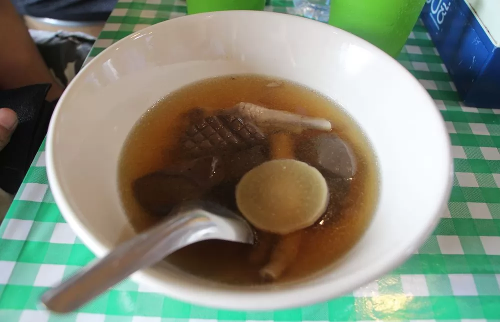 這是雞肉清湯(雞血、雞腳、白蘿蔔片),當然少不了4大天王調味料,把自已喜歡的口味調出來。