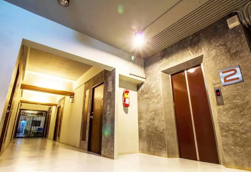 只有5層、房間不多,1樓大龐和停車場;2-5F為客房。