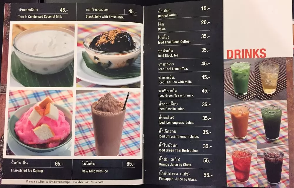 另外,還有甜點和飲料(泰式奶茶和香茅茶等),價位35-65銖之間。