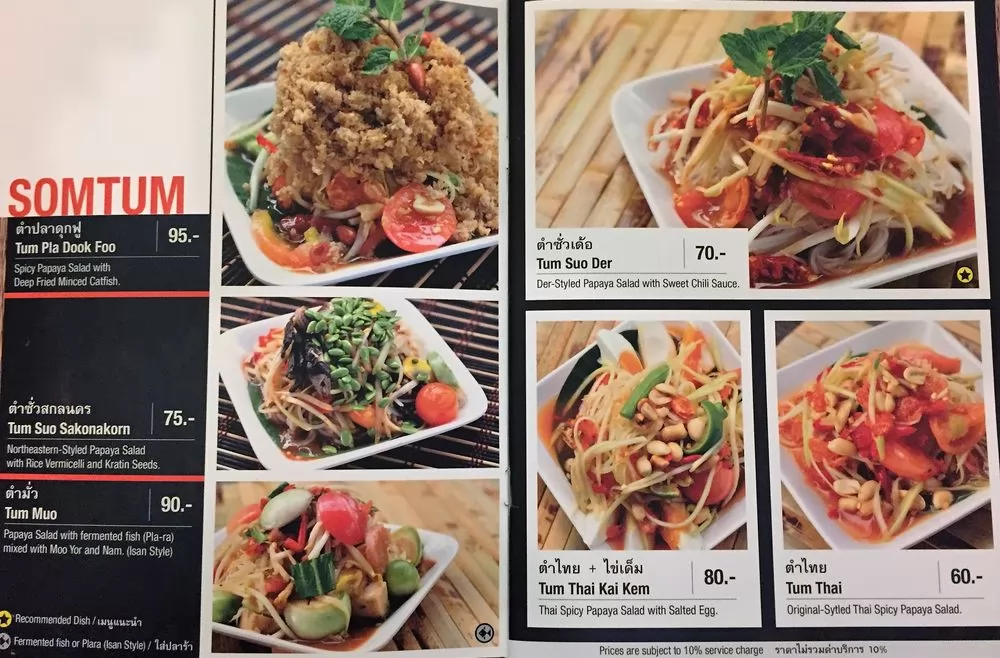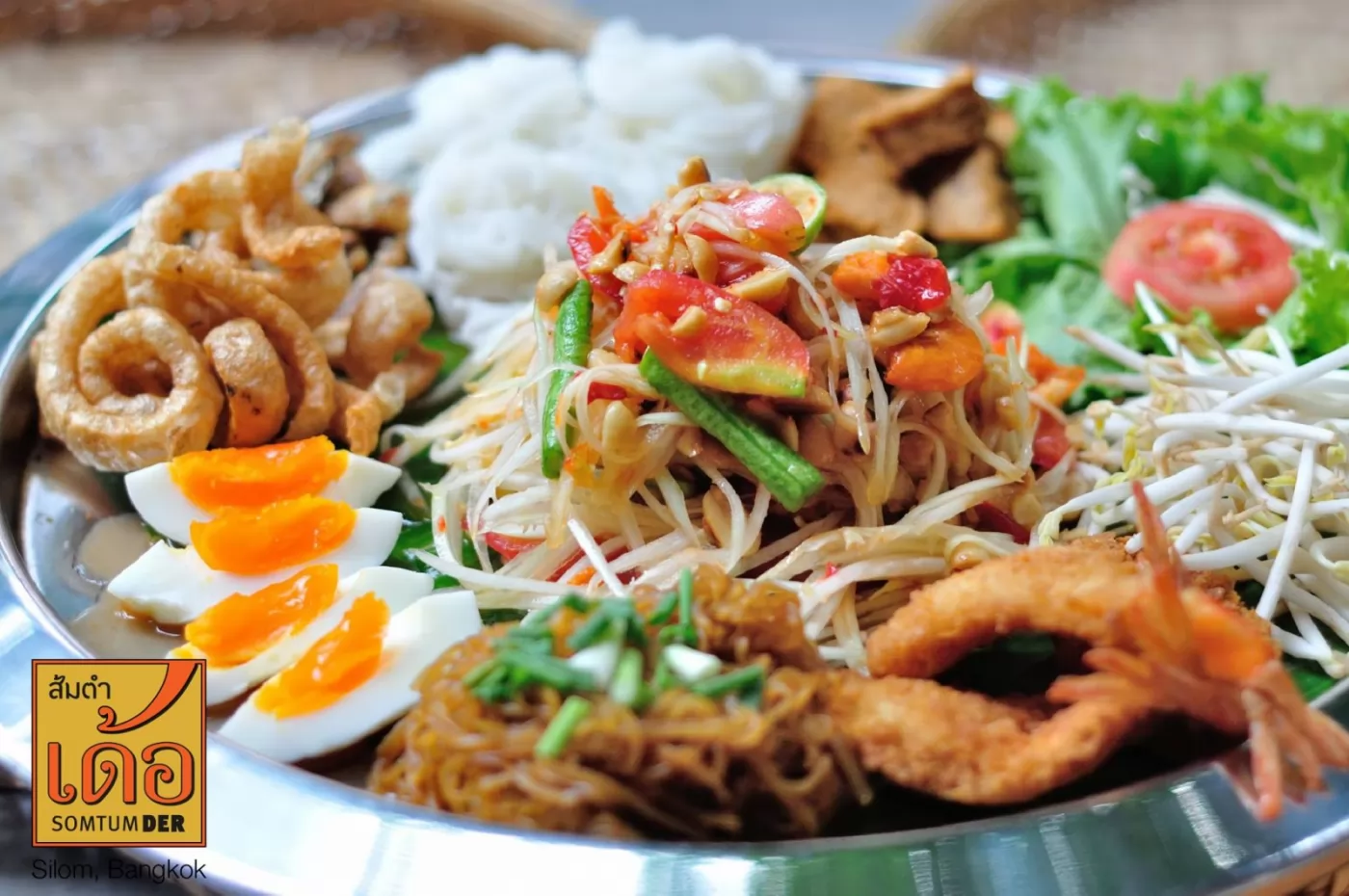 在曼谷有很多東北菜的餐廳,西隆(SILOM)有兩家廣受歡迎的餐廳,Somtum Der(ส้มตําเด้อ สีลม)就是其中之一(另一家是Convent巷的Hai Somtam Convent)。