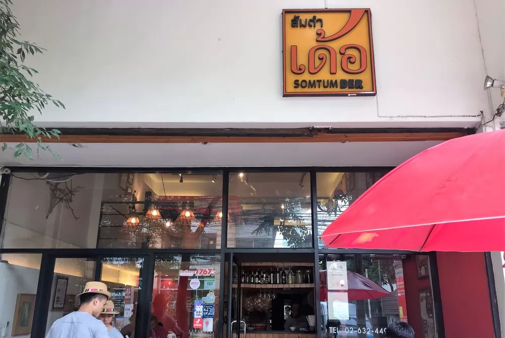 開業於2012年的Somtum Der,名氣雖然不如SIAM區的Somtum Nua,店招牌也很相近,同樣的菜色,品質和價位也是出色。曾經躍上國際版面,CNN曾報導9間曼谷新餐廳(Bangkok’s flavor explosion: 9 top new eateries)之一。