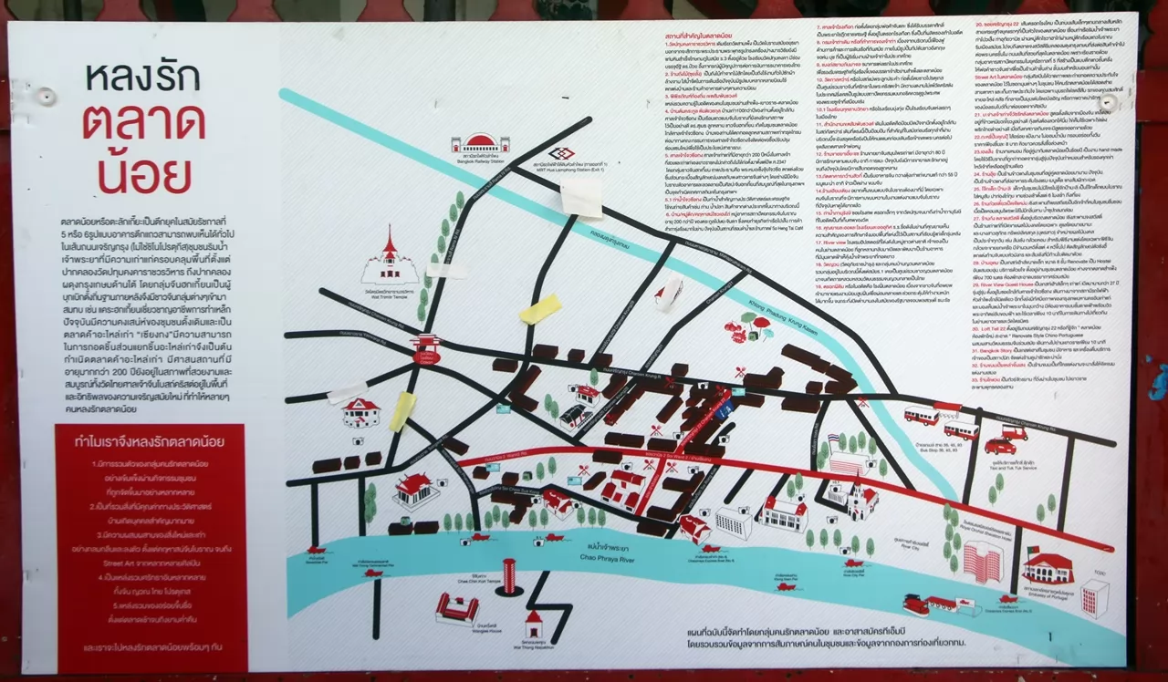 在這傳統市場周邊,隨處可見金屬部件堆積如山的舊車零件,以及分散的小吃攤,沿路走下去,你會瞭解到泰國不同華人社群的歷史,他們如何在此落地生根以及不同社群的差別特色。在體悟的同時,別忘了嚐嚐這裡的美食。