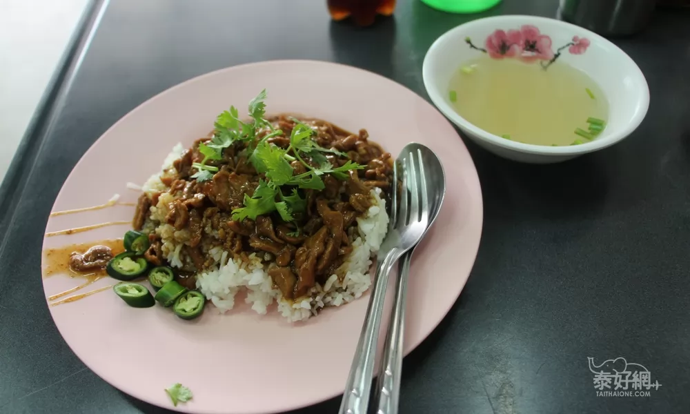 小市場裡有家特別的小吃店,ข้าวหน้าไก่ สูตรโบราณ กรมเจ้าท่า,除了一般的飯食和粿條之外,最有賣點的是ข้าวหน้าไก่(甜雞肉飯),類似咖哩雞碎肉(味道是甜的),淋在白飯上,加上青辣椒,有的人就是喜歡這種甜中混辣的味道。
