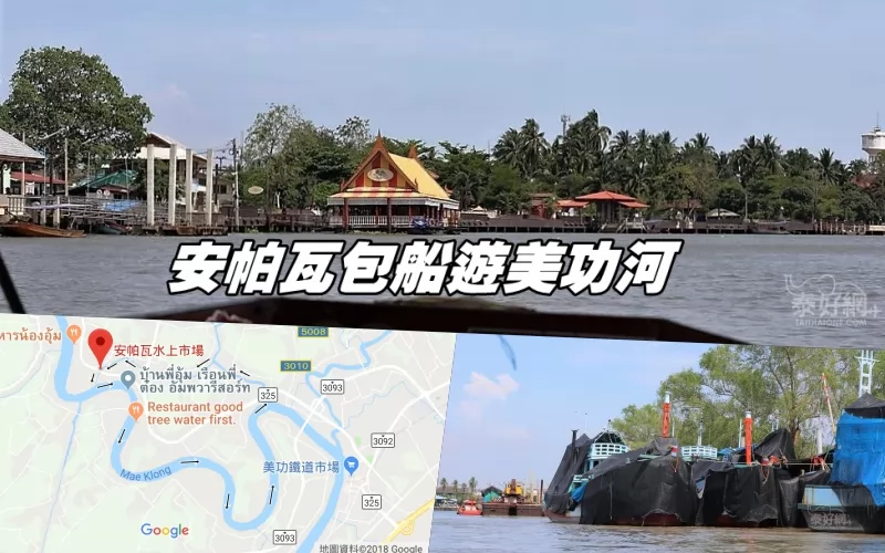 安帕瓦水上市場,連結美功河,搭船去拜過樹中廟,可以包船繞美功河1圈,觀賞亞熱帶氣候下的河景、以及岸邊各種不同風格的建築。