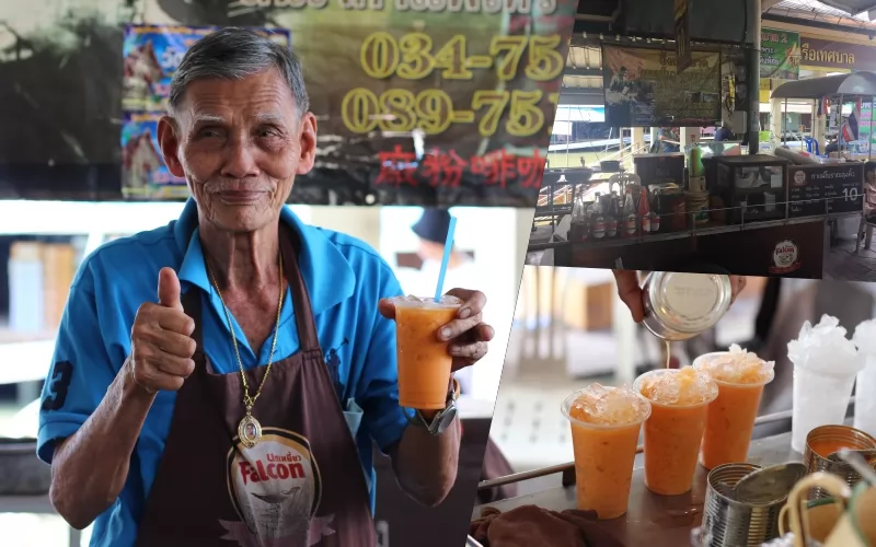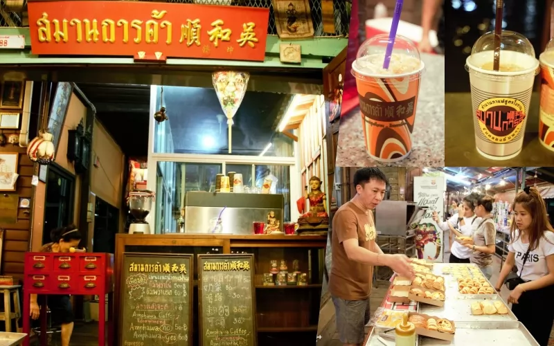 安帕瓦水上市場有著幾家好口碑的老店,其中「吳和順สมานการค้า」以泰式奶茶和咖啡聞名,獲得很多旅遊達人的推薦,不可錯過!