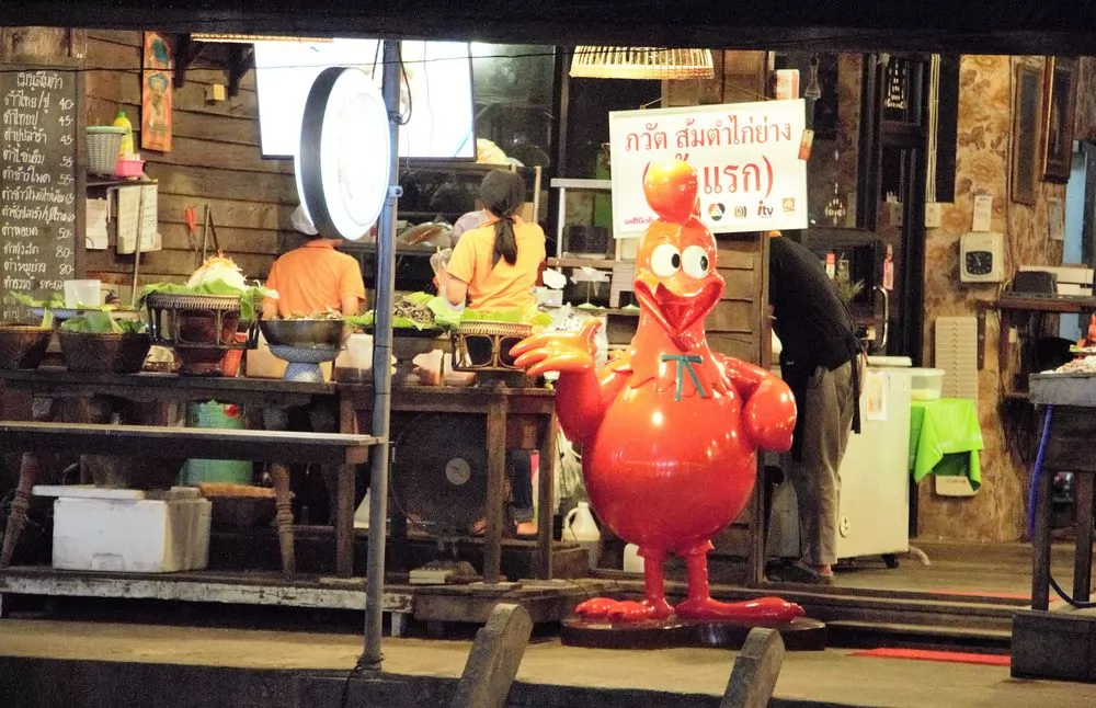 安帕瓦水上市場,必吃的海鮮!除了河岸船家的餐廳,泰國旅遊網站chillpainai推薦有紅公雞海鮮餐廳(Som Tum Seafood)。
