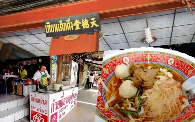 安帕瓦水上市場有很多美食小吃,其中值得推薦的—「天德堂米粉湯(เทียนเต็กตึง)」,可以去嘗嘗看哦!