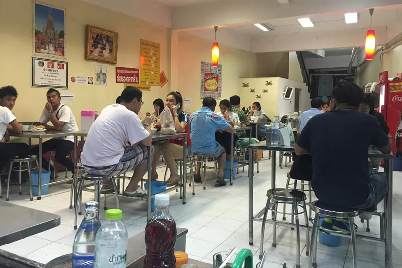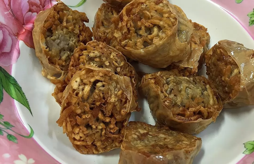 這裡最特別的當屬炸芋絲卷(เผือกทอด),把芋頭刨成絲做成卷,切段炸制金黃酥脆就成了,美味想像的出來,非常不錯,即便浸入湯麵中也不失酥脆,是店內最受歡迎的料理,可以單點(1份40銖)、也可以加入麵中來吃。
