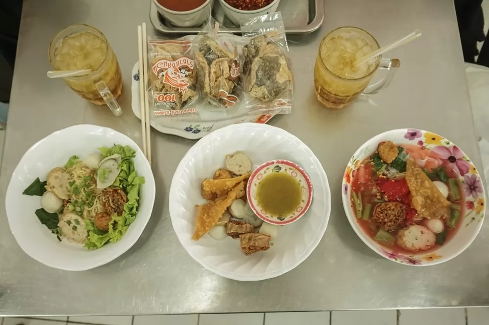 分乾、湯兩種吃法,乾麵(บะหมี่แห้ง)加入碎花生;湯麵則也有映豆腐的紅湯(บะหมี่โฟต้มยำ)可選,價格也很親民,1碗40-45銖。