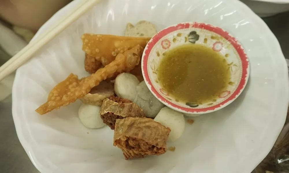 馬海清主要賣的是魚丸麵、粿條,味道其實跟路邊攤沒有區別,但重點在魚丸、魚餃、炸芋絲卷等配料,好吃,很多人都是為此而來的。