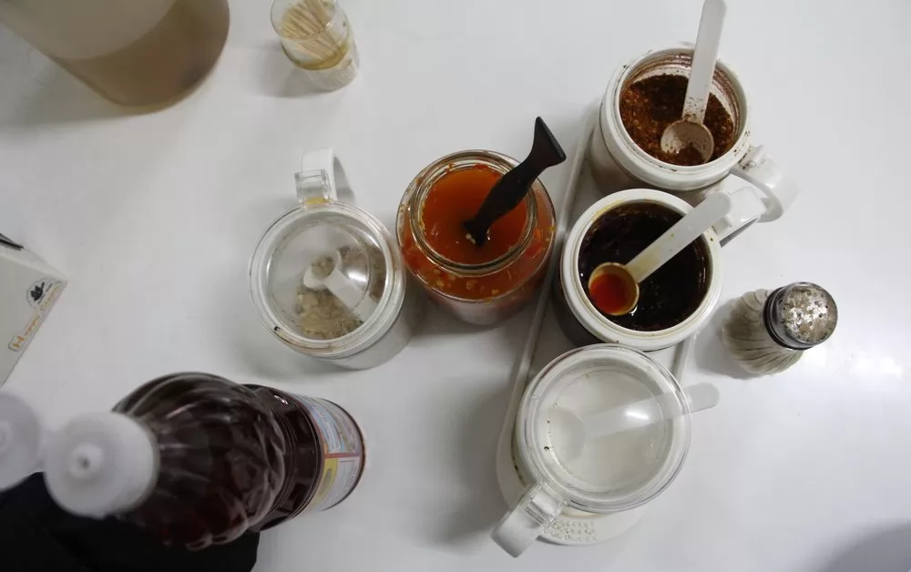 除了4大天王調味料,與別家不一樣的是,這裡還提供辣椒油,喜歡吃辣的朋友更多1種選擇,辣味很足喔!