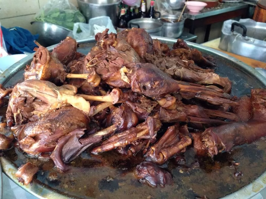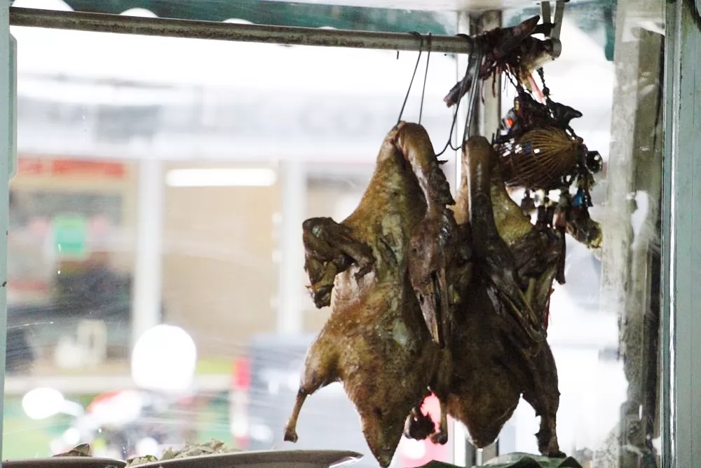 鴨肉,泰國人喜歡配粿條,但移民過來的華人喜歡加麵條,來這裡可以吃得到。