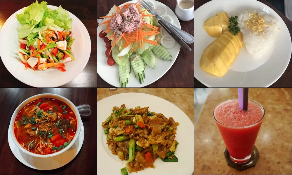 海鮮炒飯量很足,海鮮很新鮮;芒果糯米飯,糯米超級糯,芒果又大又甜又新鮮;冬蔭功湯(酸辣蝦湯)口味很地道,酸酸的很開胃,不會很辣。