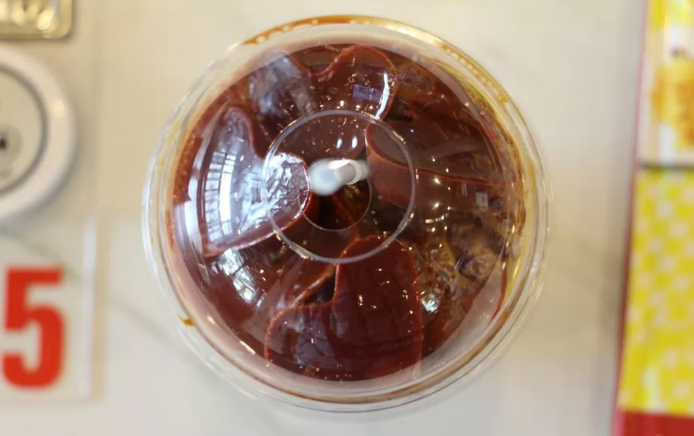 值得推薦的泰式奶茶(Thai Tea Ice Cube With Milk),1杯95銖,泰奶冰凍製成心形,然後放入牛奶及冰塊上,泰奶心形塊慢慢融解,與冰塊和牛奶混合出不同程度的味道,跟一般的泰奶相比,多了一些融合的樂趣,可愛的造型,也獲得少女心的喜愛,來這裡就是要點來,拍照!