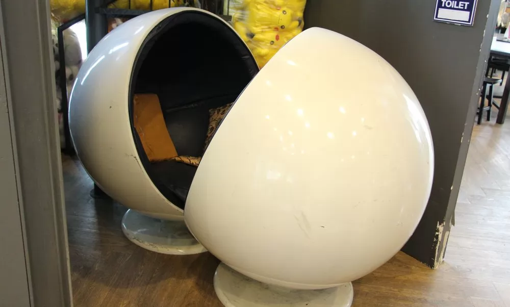 另外,玻璃門、吊燈、吊扇和座椅,也都很有特色。