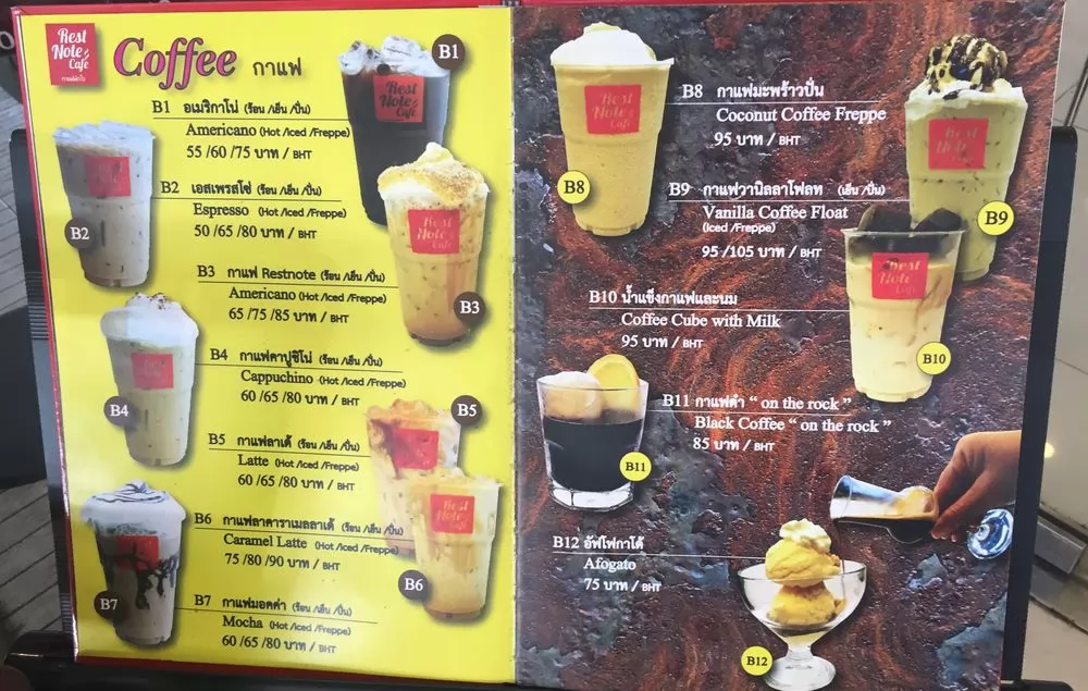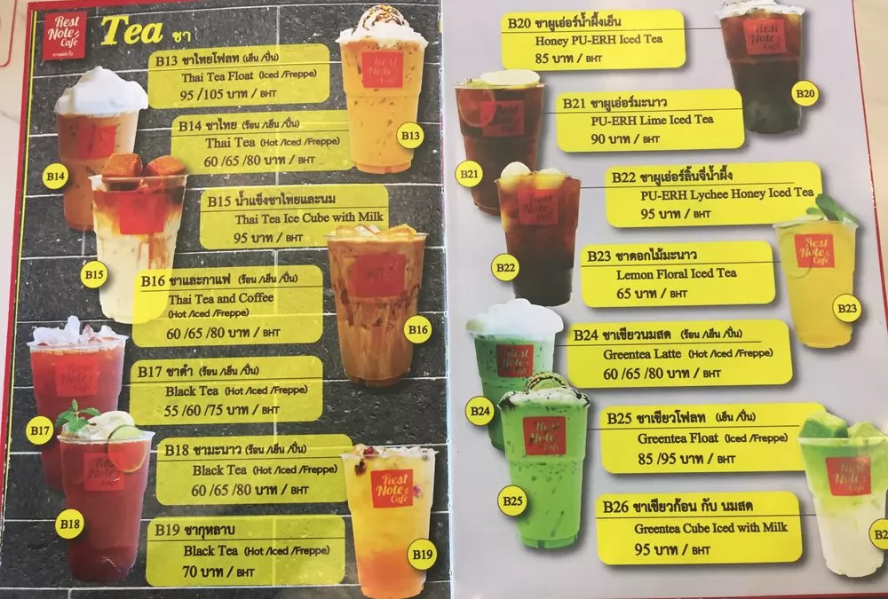 非用餐時間來,可以點杯飲料,咖啡類55到95銖;茶類55到105銖。